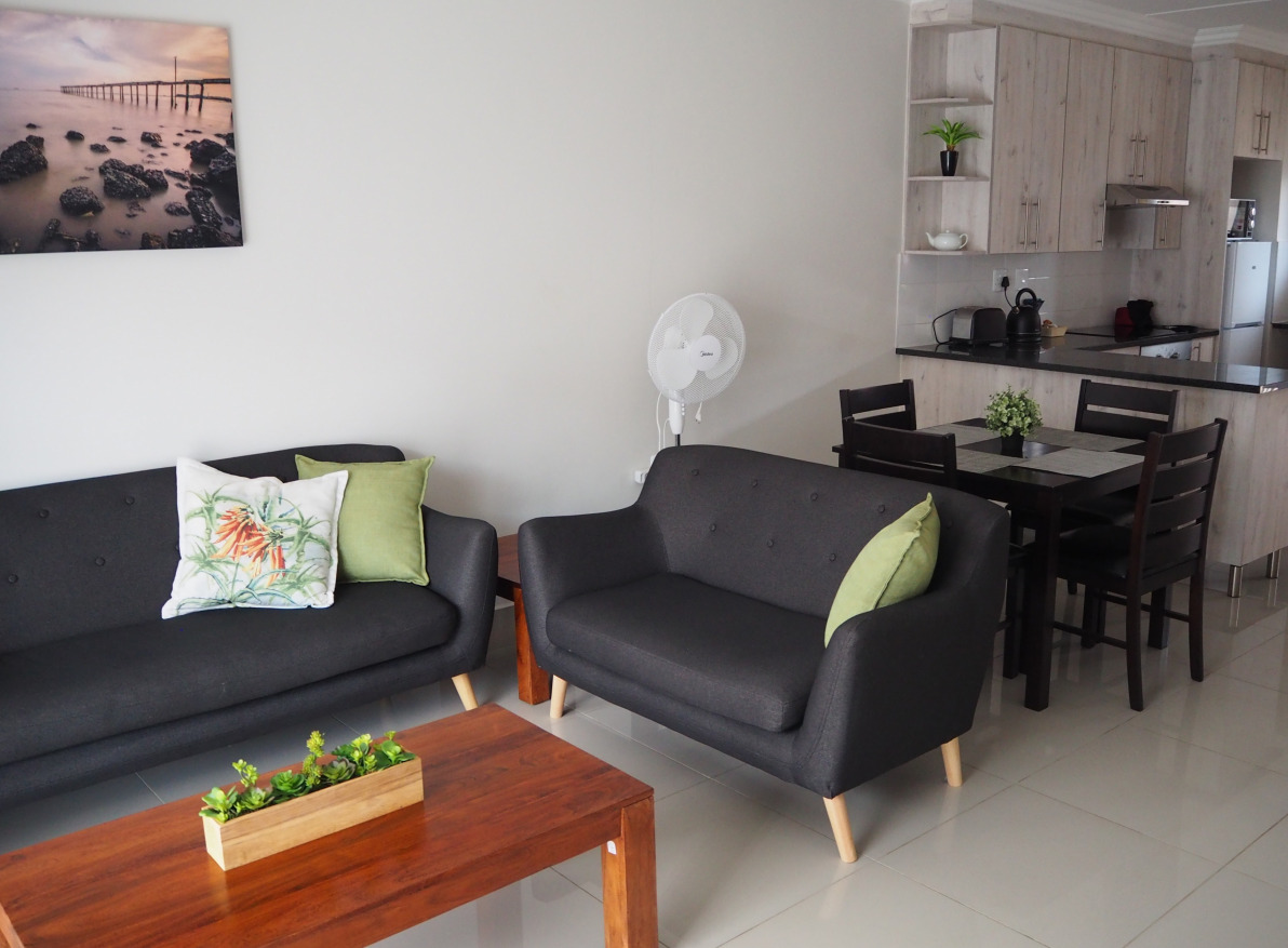 The units are situated in a secure, gated complex with 24-hour security guard on duty. Covered, secure parking is allocated to each unit. We offer apartments with 1 bedroom and 1 on-suite bathroom. These units are 65m². Our other apartments are a roomy 80m² and feature 2 bedrooms and 2 bathrooms. These units have a queen bed with on-suite bathroom in the main bedroom, while the second bedroom features either 1 or 2 single beds, depending on unit configuration. A separate bathroom with shower serves this bedroom.